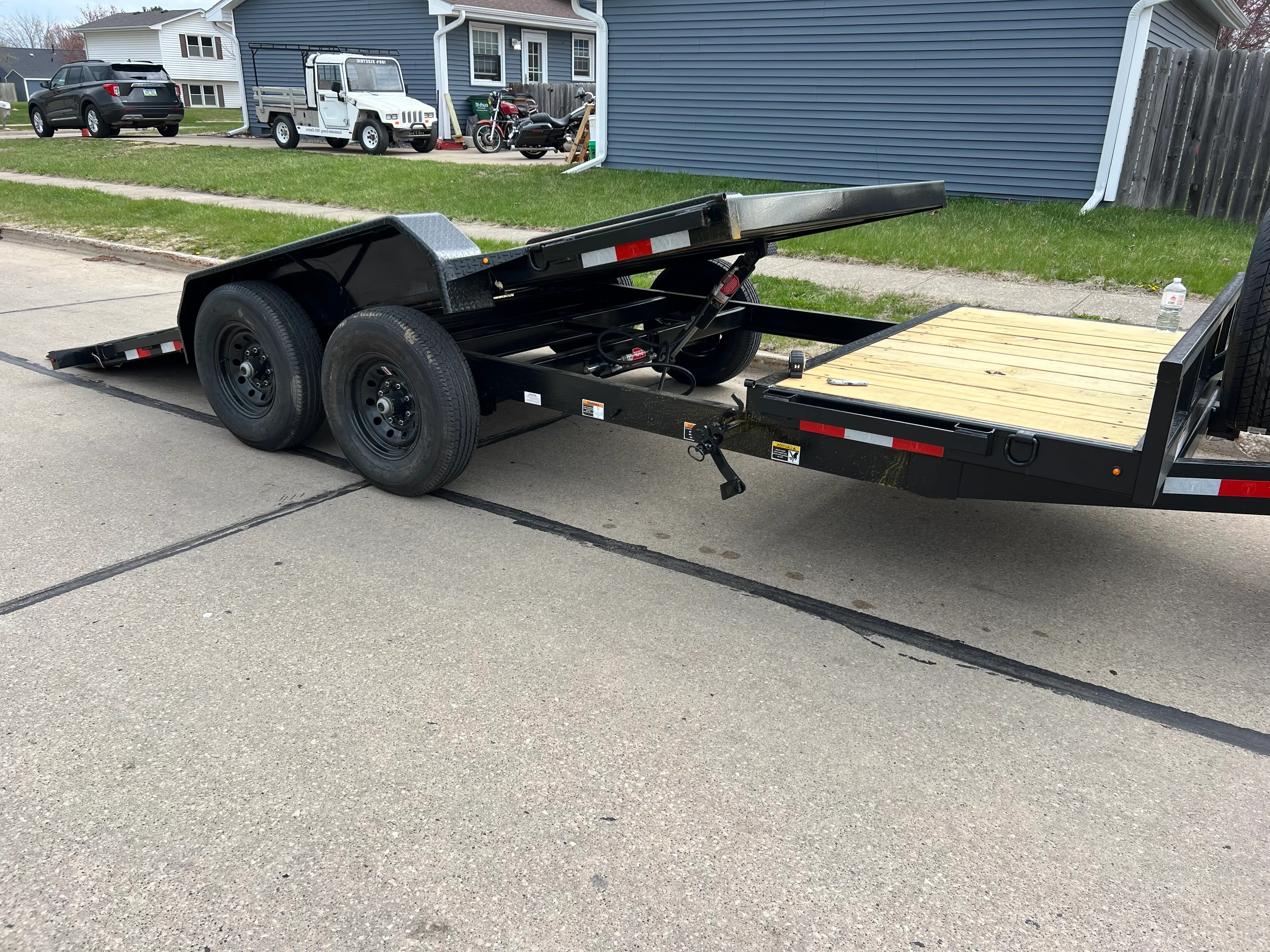 The 20' Tilt Trailer Rental offers seamless loading with its hydraulic tilt feature, making it perfect for transporting heavy equipment with ease.